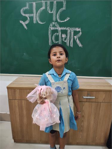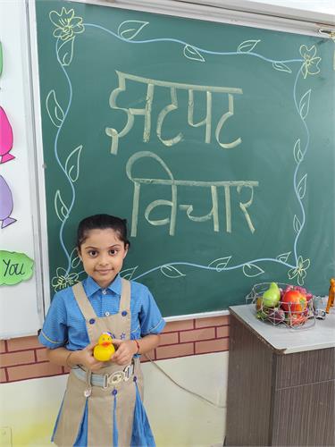 प्रतियोगिता में प्रत्येक विद्यार्थी को किसी वस्तु या शब्द पर तत्क्षण हिंदी भाषा में अपने विचार प्रस्तुत करने के लिए 1–2 मिनट का समय दिया गया। सभी बच्चों ने उत्साहपूर्वक भाग लिया और अपने विचार आत्मविश्वास के साथ प्रस्तुत किए।