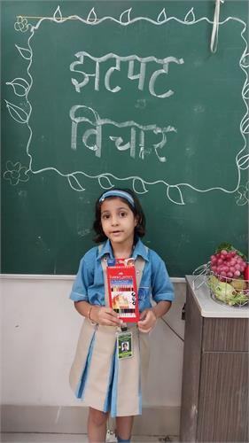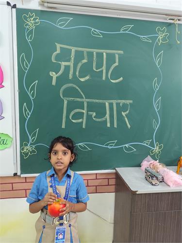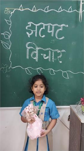 कक्षा 1 के विद्यार्थियों के लिए " झटपट विचार" (Extempore) प्रतियोगिता का आयोजन 18.9.2025 को किया गया था। इस प्रतियोगिता का उद्देश्य बच्चों में आत्मविश्वास, त्वरित सोचने की क्षमता, भाषा एवं अभिव्यक्ति कौशल तथा मंच पर बोलने का साहस विकसित करना था।