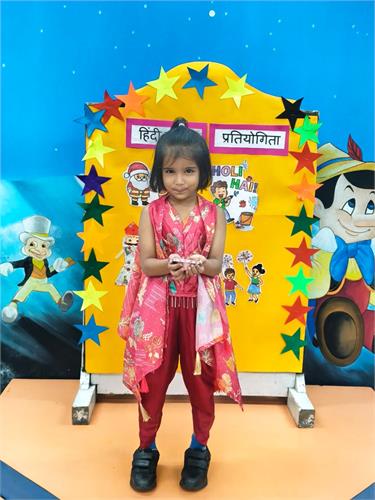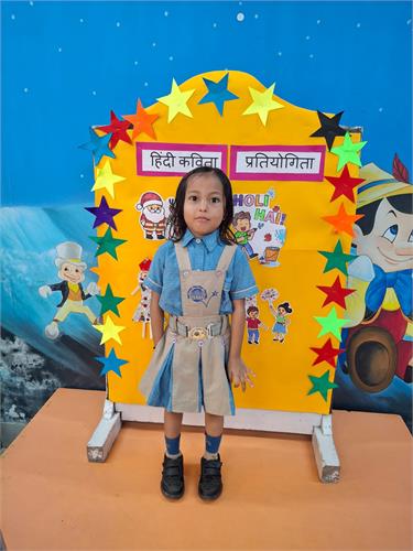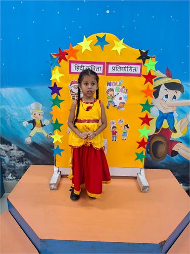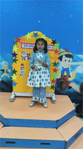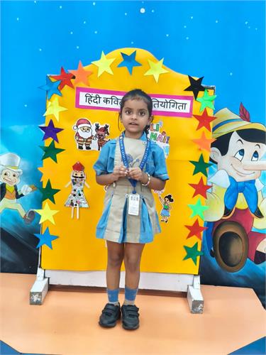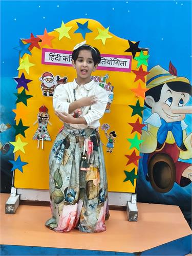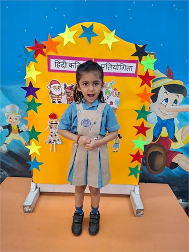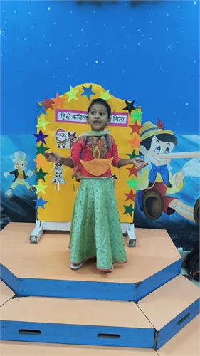 हमारे विद्यालय में प्री प्राइमरी छात्रों के लिए हिंदी कविता प्रतियोगिता 26-9-2025 को आयोजित की गई। इस प्रतियोगिता का विषय था “त्यौहार”। प्रतियोगिता का उद्देश्य बच्चों में हिंदी भाषा के प्रति प्रेम जागृत करना और उन्हें आत्मविश्वास के साथ मंच पर प्रस्तुत करना सिखाना था।