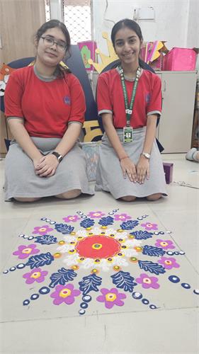 An Inter-House Rangoli Making Competition was organized by Queen’s Valley School on 15th October 2025 for students of Classes XI and XII to celebrate the festival of Diwali. The event aimed to promote creativity, teamwork, and cultural appreciation among students while encouraging the use of eco-friendly materials.