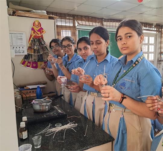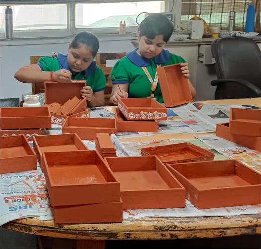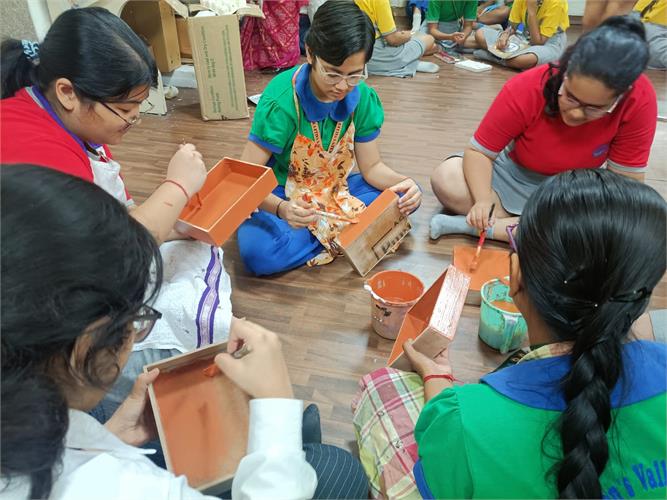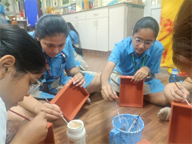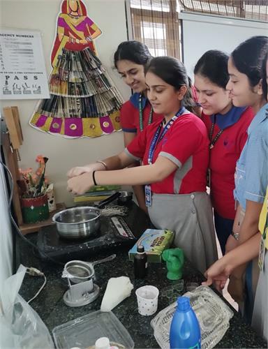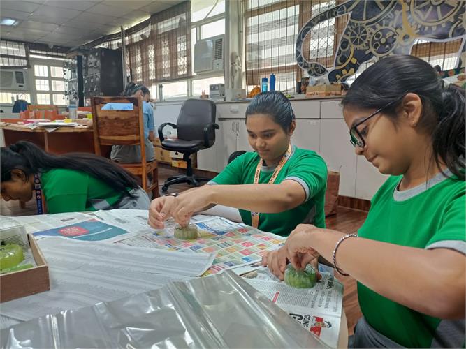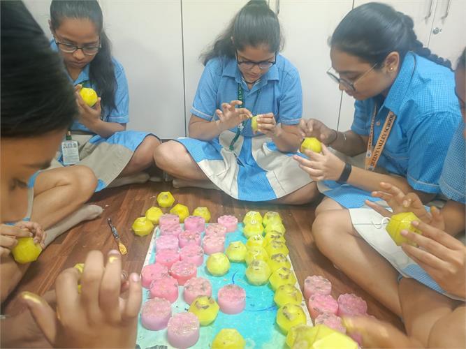 From the intricate artistry of handicrafts made from Paper Mache to the practicality of Candle Making, Crafting Storage Boxes, manufacturing Sanitary Pads, designing Jewellery, and creating Handmade Soap, students explored various facets of innovation and entrepreneurship. Our team of 5 students also participated in an Online pitching session – School Innovation Contest 2023-24 as per the direction of the Ministry of Education’s Innovation Cell on 6 February 2024. They pitched the idea of making sanitary napkins using banana fibre and were highly appreciated for their innovative solution.