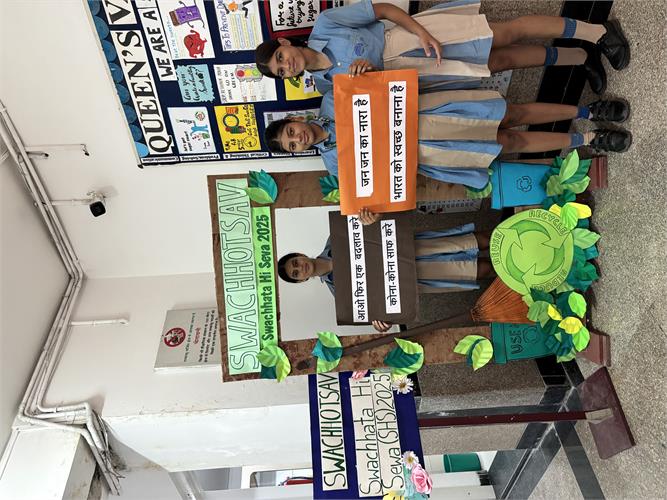 Queen’s Valley School proudly observed SWACCHOTSAV from 16 to 30 September under the ‘Swachhata Hi Sewa’ 2025 campaign. The celebrations began with a solemn Swachhata Shapath, where students pledged to uphold cleanliness and hygiene in their surroundings. Pre-primary children enthusiastically practised classroom cleaning and organisational skills, while preschoolers participated in engaging sanitation and hygiene workshops that included demonstrations on proper handwashing, toilet etiquette, and healthy daily practices. These simple activities helped develop lifelong habits in the youngest learners.