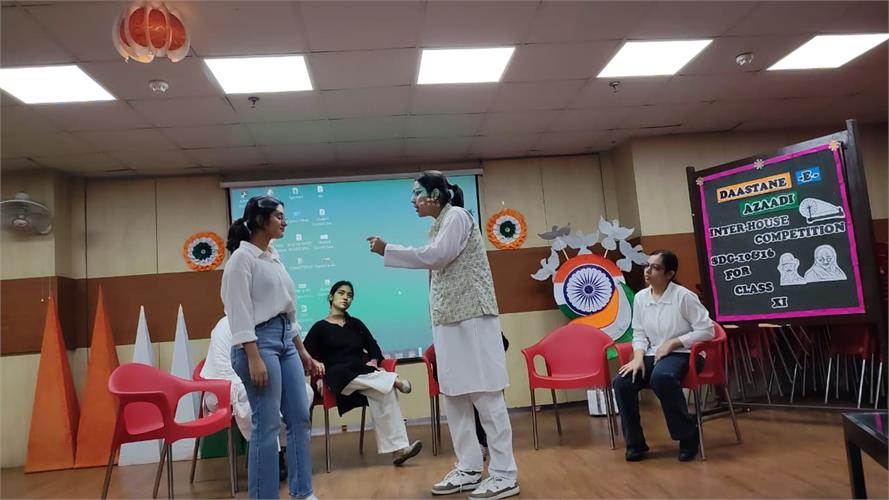 दास्तान-ए-आज़ादी - Role Play competition was organised for the students of class XI on 1st September 2025, that brought alive the stories of courage, sacrifice and resilience of our freedom fighters through impactful performances. All four houses-Integrity, Peace, Courage and Truth participated with great enthusiasm, each presenting powerful acts that highlighted significant moments of India’s struggle for independence. The participants displayed strong expressions, accurate dialogue delivery and thoroughly prepared scripts that held the audience’s attention throughout the event.