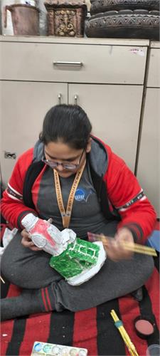 Students enthusiastically participated in the challenge, showcasing their imagination and craftsmanship by converting waste bottles into planters, pen stands, bird feeders, lamps, organisers, decorative showpieces, and utility items. Through careful cutting, shaping, colouring, and assembling, students demonstrated excellent material-handling skills and a strong sense of safety and functionality.